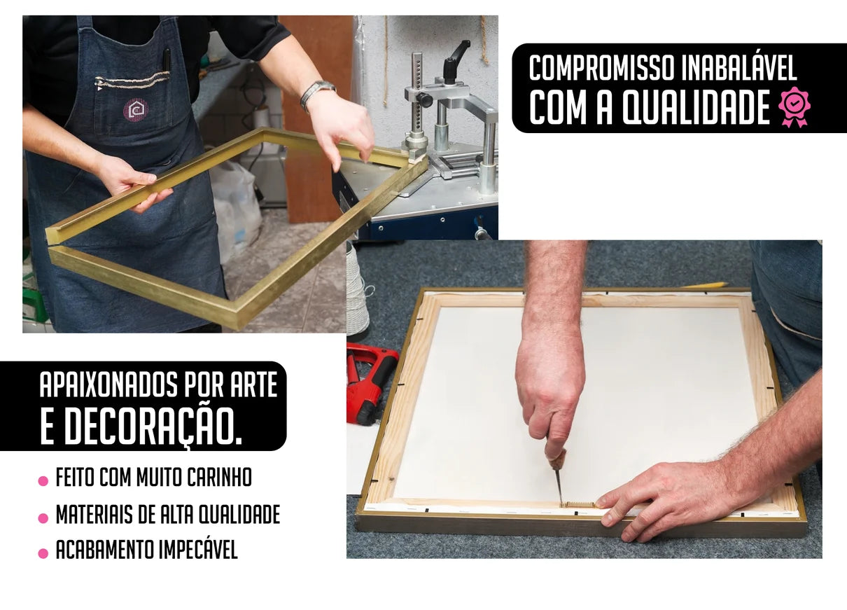Nossa produção é feita artesanalmente com amor, o que garante que cada quadro seja único e especial. Cada peça é cuidadosamente feita à mão por nossos artesãos, para garantir a qualidade e a durabilidade do produto.